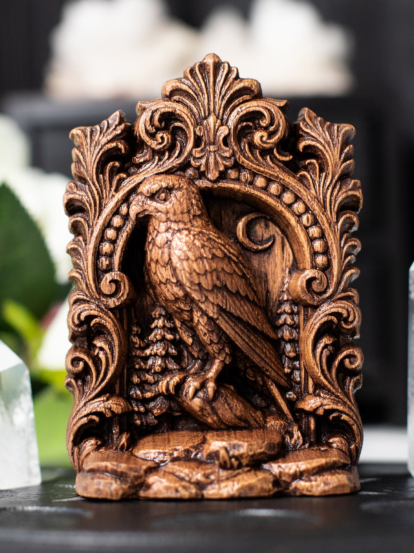 Each hawk totem is handcrafted from natural wood, so subtle variations in grain and detail will appear, making every statue unique. If not in stock, please allow up to 7 days for creation before shipping.