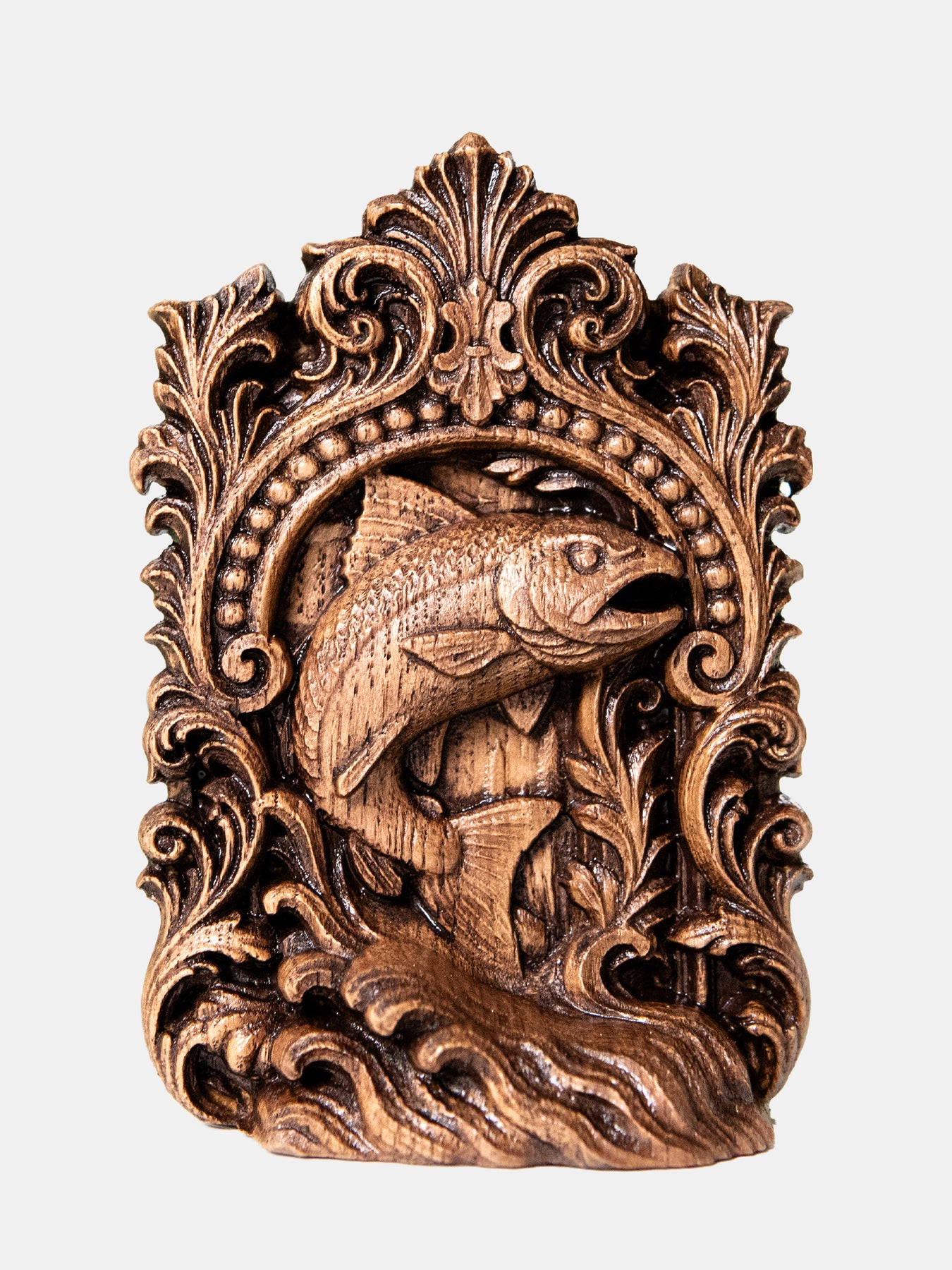 This handcrafted wooden figurine embodies the timeless symbolism of the wooden fish, honoring the sacred journey, strength, and determination found in the salmon’s life cycle. As both a fish statue and a salmon statue, it represents resilience, wisdom gained through experience, and the instinct to return to one’s true path. Recognized across cultures as a guide of intuition and transformation, the salmon totem supports clarity, emotional healing, and spiritual perseverance.